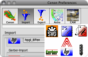 To enjoy a stress-free data transition you will need a versatile data import. Cenon offers: PostScript (PS, EPS), PDF, Adobe-Illustrator (with PS-Header), DXF, SVG, Gerber, HPGL, drill formats (Sieb&Mayer, Excellon, Wessel), NC-Data/G-Codes.
