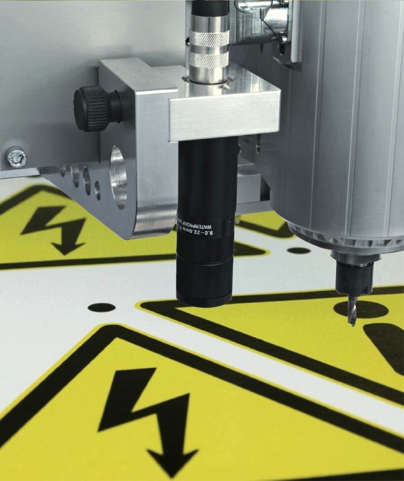 | | Applications Possible applications are cutting of Large Scale Prints in the Sign Making industry, textile and leather cutting, or the processing of Screen-Printed front panels. Whenever multiple independent working-steps need to be combined (ex: Printing -> Cutting, Laminating -> Milling/Drilling, etc.), the camera gauging of Cenon can be applied. |