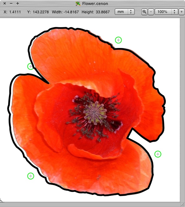 | | Camera + Targeting This option of Cenon allows the recognition of location, rotation, and even distortion of a working piece by using a camera mounted to the machine. The parts being processed can be placed approximately on the machine. It doesn't even matter whether printed banners are stretched. Now, Cenon scans the working area with a camera to determine the exact position, orientation, and deformation. During output, the design on the screen will be transformed to fit the real-world situation on the machine. |