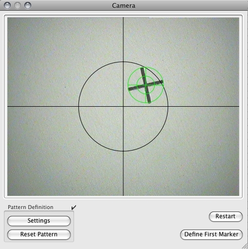 | | The Camera Panel - command center The camera panel allows you to select the pattern to be recognized. After defining the starting point, you can press Start and run the Job. Three buttons do the entire job! You can interrupt the automatic recognition of markings or corners by pressing "Restart". The graphics and reference-markings being processed can either be designed in Cenon or imported. |