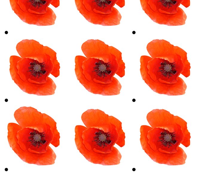 | | Preview of transformed output The preview shows the rotated and scaled output as measured by the camera gauging. Even deformations affecting the entire area (or one part of a batch) can be corrected. Our example is using a cross for the markers. It is also possible to use circular dots as they are tolerant to rotation. Additionally, corner patterns can be recognized or any other connected pattern. |