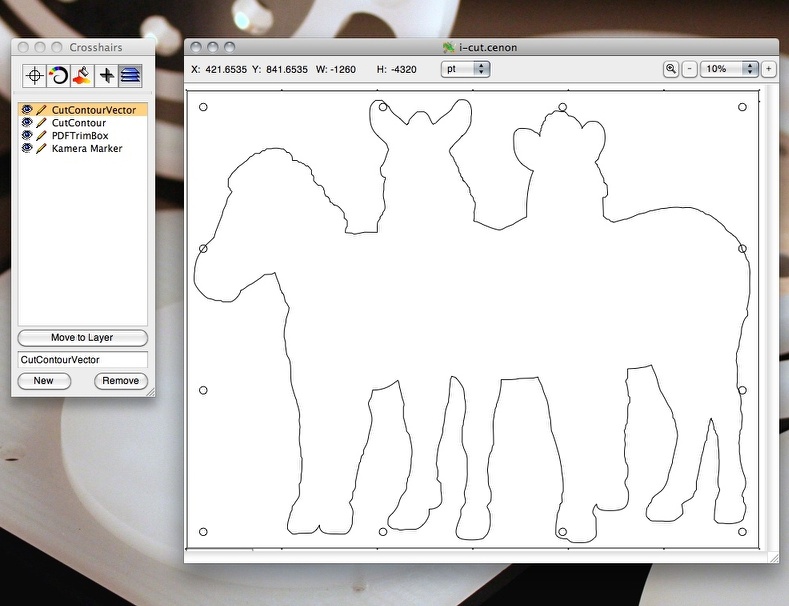 | | i-cut Import The Printing Industry is applying professional RIP Software for large-scale printings. These printings then need to be cut in shape... The bridge to cutting machines is often done with a specialized file format, the i-cut format. Cenon can import this file format, which contains the position of markers as well as the contour of the graphics. Both is imported into Cenon right to the corresponsing layers, making output quick and straight forward. |