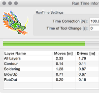 The times are displayed per layer and in total; they are especially exact for the CNC-Controllers of vhf (in many cases up to a couple of seconds).